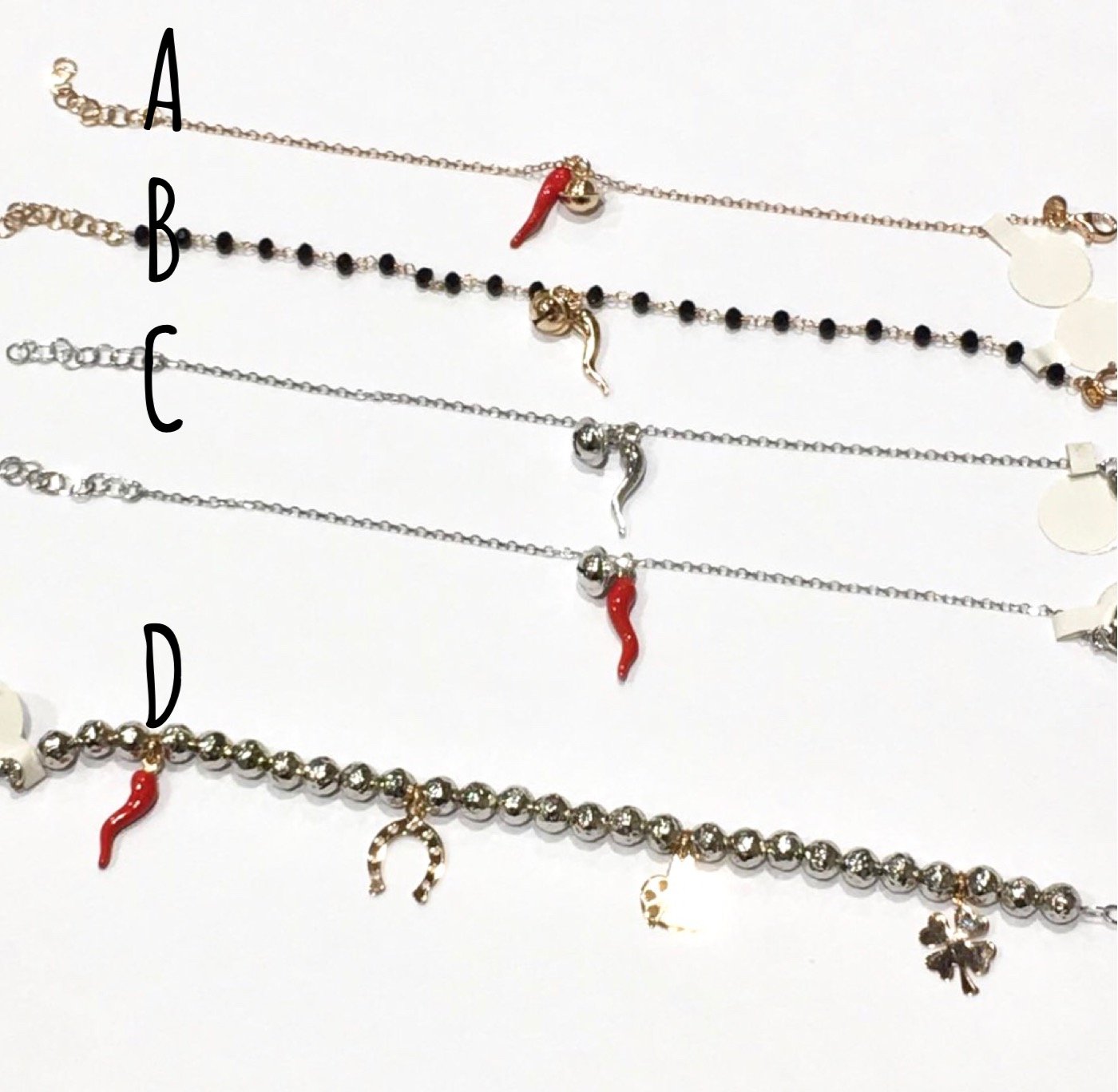 A) braccialetto catena sottile con peperoncino smaltato e campanellino