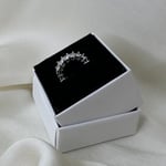 La finitura argento lucido valorizza la purezza delle linee e amplifica la luce delle pietre, regalando un risultato elegante e sofisticato.