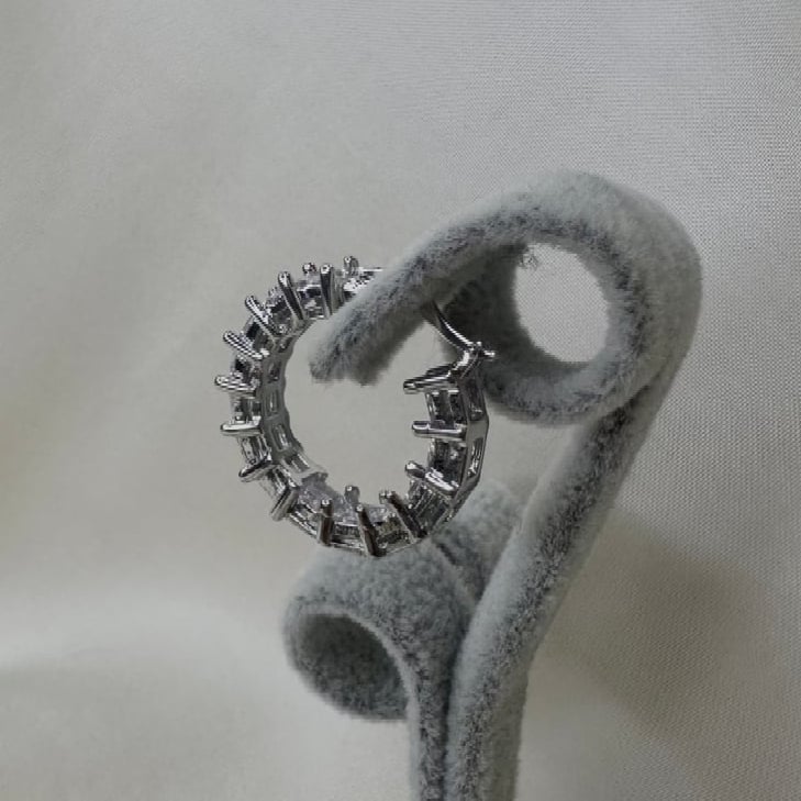 la forma a cerchio compatto è impreziosita da una fila continua di pietre luminose, incastonate con precisione per creare un effetto brillante e uniforme.