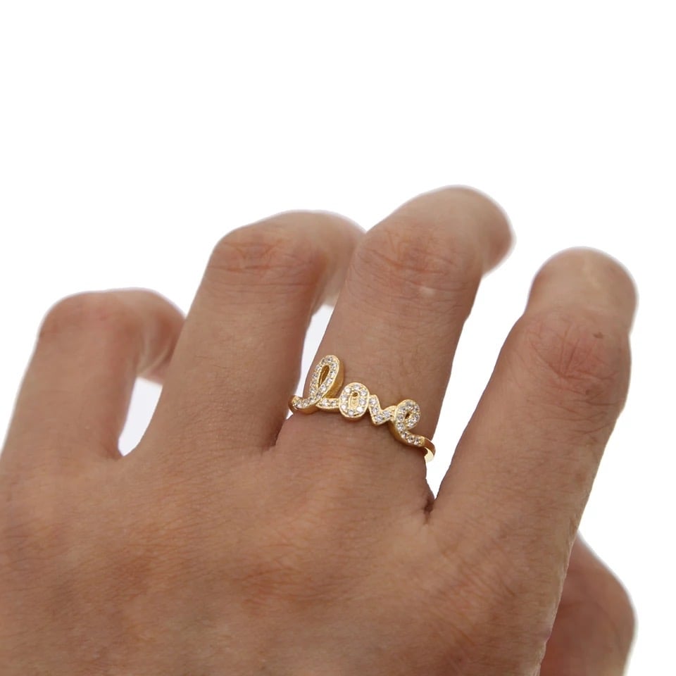 Anelli in argento 925 con scritta Love con zirconi microincastonati .